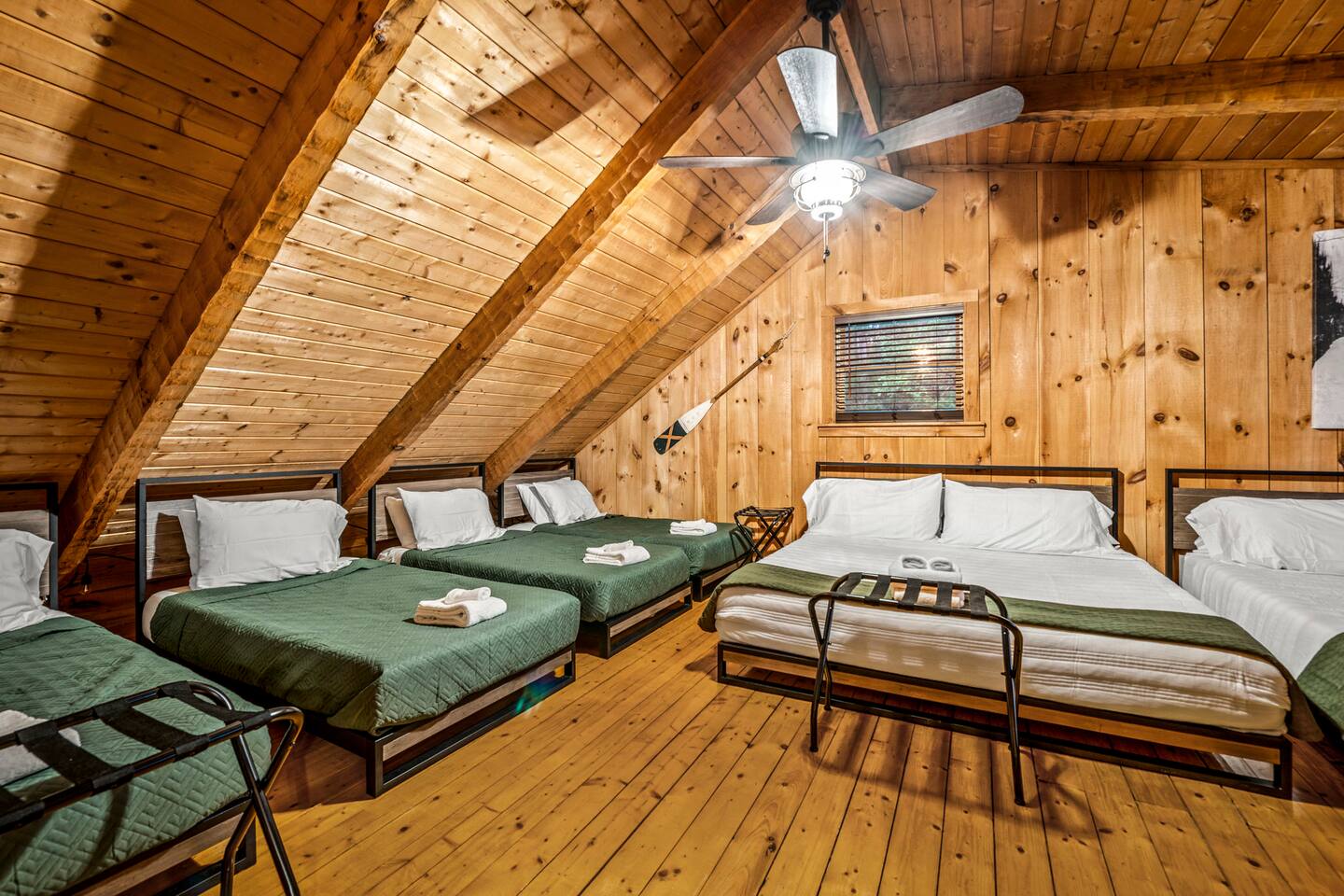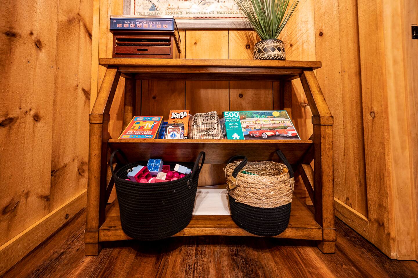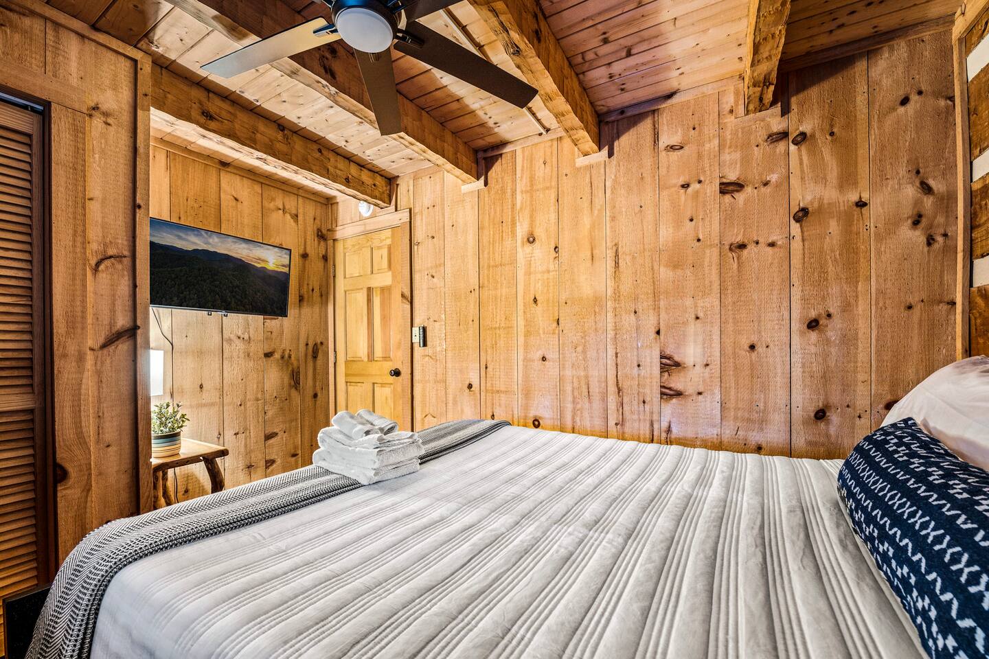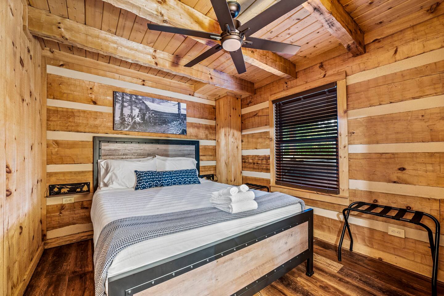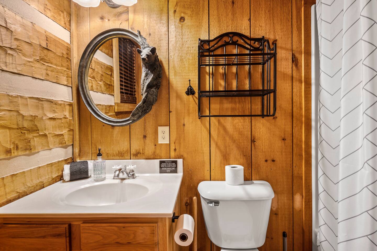 ❈ six private acres to relax or explore ❈ six miles to the main strip in Pigeon Forge ❈ view of Bluff Mountain and private property ❈ shaded and sunny deck spaces with ample outdoor seating and lounging ❈ large fire pit with a view and Adirondack chairs ❈ private hot tub ❈ fully-loaded kitchen ❈ smart TV’s everywhere ❈ wifi internet ❈ indoor sound systems ❈ pool table & dart board ❈ arcade games ❈ cornhole and other outdoor games ❈ board games, books, and puzzles ❈ large Connect 4 ❈ charcoal grill and grilling accessories ❈ ceiling fans and portable fans ❈ all new memory foam mattresses ❈ fresh bed & bath linens & beach towels ❈ basic starter consumables to include: coffee, trash bags, a roll of paper towels, household cleaner, a fresh dish sponge, dish soap, dishwasher soap, hand soap, shampoo, conditioner, body wash, and a roll of toilet paper or two in each bathroom ❈ high chair, pack-n-play, kids dinnerware & utensils ❈ washer and dryer ❈ flat parking for 4 vehicles Pull into your long private driveway and have a look at your private Smoky Mountain retreat. You’ll notice that it’s the only cabin you can see in the front of the property and that you’ll have plenty of space to enjoy. This is very rare in the area! The cantilever barn along the driveway was built around 90 years ago when the property was used as a tobacco farm. The forest of trees, seasonal streams, and the mountainside to the South are all part of your 6 acre retreat. You’ll have level parking for 4 cars right next to one of the three staircases to the cabin. There is a big fire pit overlooking the property with a view of Bluff Mountain. There is currently a ton of cut and fallen firewood that you are free to gather from the property. There is a charcoal BBQ pit in the fire pit area. Light a fire, grab the cornhole boards and a beverage and enjoy your evening at Pleasant Acres! The cabin has 135 ft of deck for you to enjoy. The front deck is our favorite spot to relax and enjoy the beautiful Smoky Mountain weather. We have a swinging bench, 4 rocking chairs, & a hammock. The nights on the decks are serene with animal sounds and rustling trees. The back deck features a private hot tub, a log futon and two rocking chairs. The closest neighbors to the back are ~275 feet away and separated by a tree line. The front door of the cabin will lead you to an open floor plan living room outfitted with all new leather furniture. The whole family can enjoy this large space which flows into the dining area and full kitchen. The 65” smart tv in the living room is connected to the wifi that you can also connect your personal devices to. There is a ton of free content on the TV’s. Feel free to sign into your Netflix or other accounts. There is a sound bar with a subwoofer for playing music or creating a theater experience with a movie. The large kitchen is well-equipped and includes dishes, glasses, utensils, cookware, grilling tools and linens. We also have a crock pot, a toaster, a blender, a Keurig that makes single cups, and a separate drip coffee maker. There are three bedrooms and three bathrooms. All bedrooms have all brand new furniture and memory foam mattresses. The master bedroom is downstairs with a King bed, reading chair, ceiling fan, luggage racks, a 32” smart TV, closet and an in-suite full bathroom. Bedroom 2 is also downstairs with a Queen bed, ceiling fan, luggage racks, a 40” smart TV and a closet. The second full bathroom is downstairs just outside of Bedroom 2. Bedroom 3 is very large and has TWO King beds and FOUR twin beds. No kids fighting over who gets the top bunk. A ceiling fan and luggage racks are also provided for this room. There is a 65” smart TV and a large Connect 4 on the wall. This is a true bedroom with a door and a closet. The third full bathroom is just outside Bedroom 3 and has two sinks. The game room has a 20 foot bar with stools that overlook the living room. There is plenty of space to enjoy the pool table, dart board, & arcade games. You will also find books for kids and adults throughout the cabin, and games and toys in the downstairs hallway. We work hard to create and maintain a place that will help make your vacation memorable. Come stay at Pleasant Acres and enjoy the Smokies!!