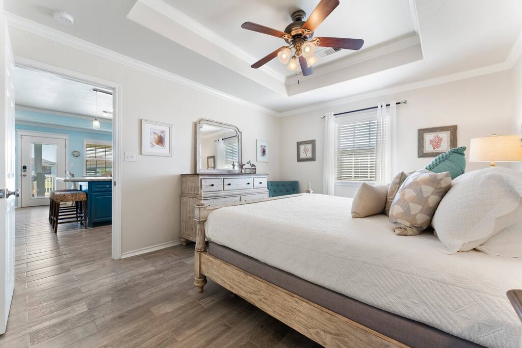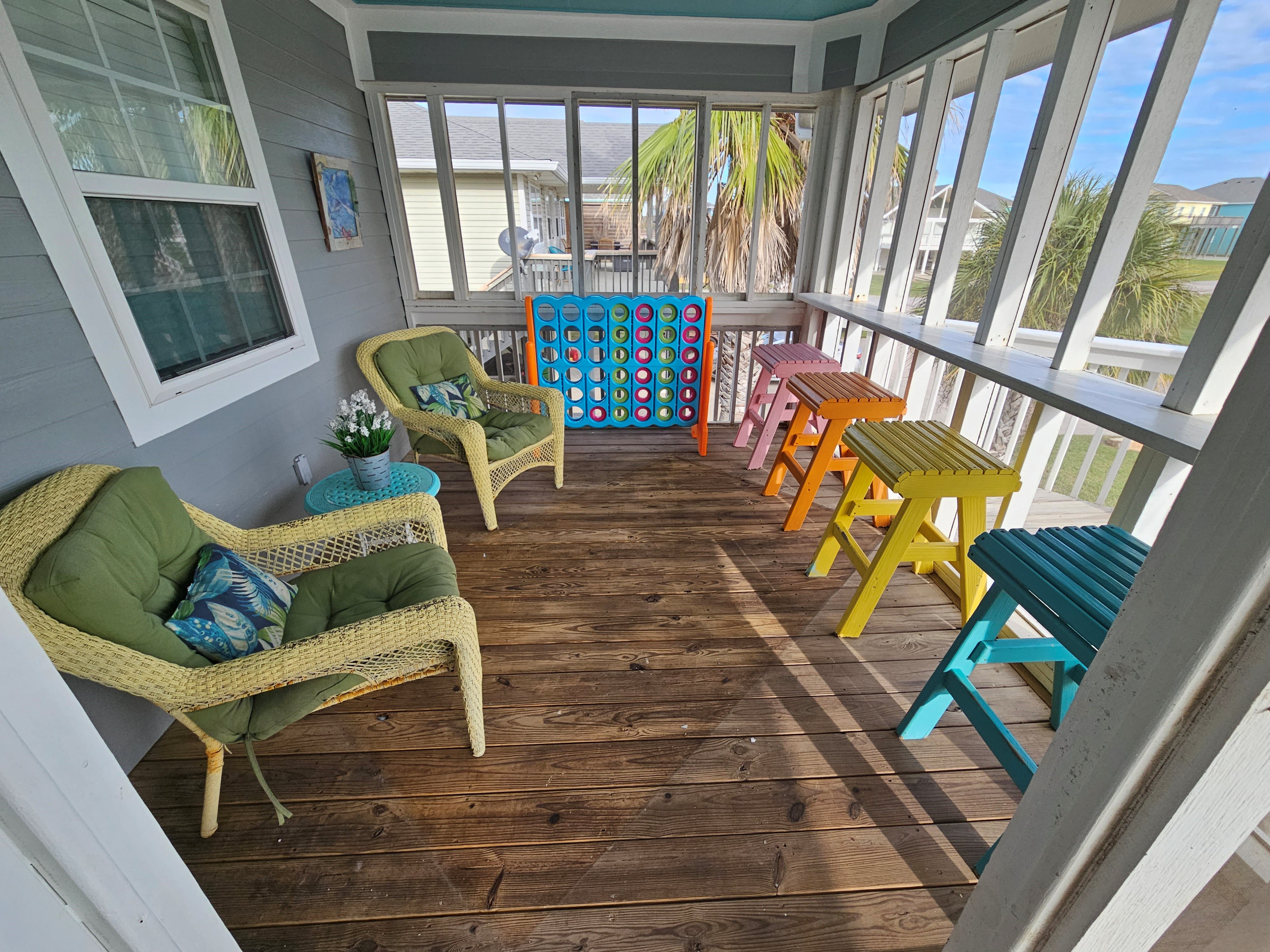 ❈ shaded, screened-in and sunny deck spaces with tons of outdoor seating ❈ 6 person private hot tub with 51 jets, multi-color light package, & waterfalls ❈ fully-loaded luxury kitchen ❈ outdoor bar and sink ❈ private outdoor shower ❈ fire pit with Adirondack chairs ❈ smart TV’s everywhere ❈ WIFI internet ❈ indoor & outdoor sound systems ❈ cornhole & other outdoor games ❈ board games, books, & puzzles ❈ beach chairs, beach wagon, & rotating supply of beach toys ❈ charcoal grill, charcoal starter, & grilling accessories ❈ deep freezer loaded with bags of ice & secondary fridge ❈ ceiling fans & portable fans ❈ fresh bed & bath linens & beach towels for 12 people ❈ basic starter consumables to include: coffee, trash bags, a roll of paper towels, household cleaner, a fresh dish sponge, dish soap, dishwasher soap, hand soap, shampoo, conditioner, body wash, & a roll of toilet paper or two in each bathroom ❈ high chair, pack-n-play, kids dinnerware & utensils ❈ dog run that includes the upper deck & a fenced portion of the back yard ❈ washer & dryer ❈ parking for 4-6 vehicles Welcome to Texas! Crystal Beach is Texas at its finest. Drive, park, barbeque, swim, fish, build sandcastles, have events, or just relax on this beautiful and convenient beach. The beach house has everything you could need to enjoy your vacation. The home is lifted over 9-1/2 feet off of the ground, and the entire space is a finished patio with swinging benches, rocking chairs, bar chairs, tables, and a bar with a sink. Outdoor speakers with a Bluetooth sound system, hanging string lights, tons of games and a G-6 Tranquility Series 6 Person Spa make this space a paradise. The upper decks are spacious and include sunny, shady, and even screened-in deck areas. Seating and lighting is plentiful, and you can even hear the ocean waves at the front of the neighborhood. Walk inside to your open-concept luxury kitchen, dining, and living spaces. The kitchen is fully-equipped with everything you could possibly need to host your family or friends. The kitchen and island area seat 12 people comfortably. Small appliances not shown in pictures include a toaster and a crock pot. The living room has comfortable seating for 8-10 people and a large Roku TV with a sound bar and a subwoofer. You’ll find board games and puzzles in the entertainment center. How about a game day, game night, or a movie night? The master suite has a king bed, a 32” Roku TV, a ceiling fan, and solid wood furniture with built-in accent lighting. This bedroom features an en-suite bathroom with granite countertops, a river stone-floored walk-in shower and a large walk-in closet. You’ll find extra towels and blankets, as well as a box fan, and first aid kit in the closet. Bedroom 2 has a queen bed, a 32” smart TV, a ceiling fan, and solid wood furniture. The closet has extra blankets, a box fan, and a roll-away bed. A Jack-and-Jill bathroom connects bedroom 2 and bedroom 3. The bathroom features granite countertops and a large shower / bath combo with glass doors. Bedroom 3 has a bunk bed (twin over full) with a twin trundle, a 32” Roku TV, a ceiling fan, and solid wood furniture. In the closet you will find extra blankets and a toy chest with some goodies for the younger kids. Bedroom 4 has 2 bunk beds (twin over fulls), with a 32” smart TV featuring Chromecast and Apple AirPlay. This bedroom has an en-suite half bath and a dedicated mini-split HVAC unit. Bedroom 4 is on ground level separate from the rest of the home, and has its own private exterior entrance. The laundry room in the master bathroom has a full sized washer and dryer, and an iron and ironing board. The garage has a stand-up deep freezer and an additional refrigerator. We have an honor system set up for the deep freezer where we keep 100 pounds of ice ready for guests at all times. This allows you to have ice for your entire stay without having to run to The Big Store (less than 1 mile away). Please do not use the ice if you’re unable to refill it before your departure. The garage also features beach chairs, a beach wagon, and a rotating supply of beach toys that you are welcomed to bring to the beach, and a number of games and entertainment options for use at the property. There is a private outdoor shower with hot and cold water to rinse off after coming back from the beach, before getting in the spa, or just for enjoying a solid outdoor shower. We have a dog run! Your dog (30 pounds or less) can roam the entire upstairs patio space and take the stairs down to a fenced-in grass yard. We work hard to maintain a place that you and yours can enjoy. Come stay with us and indulge in the beach life!