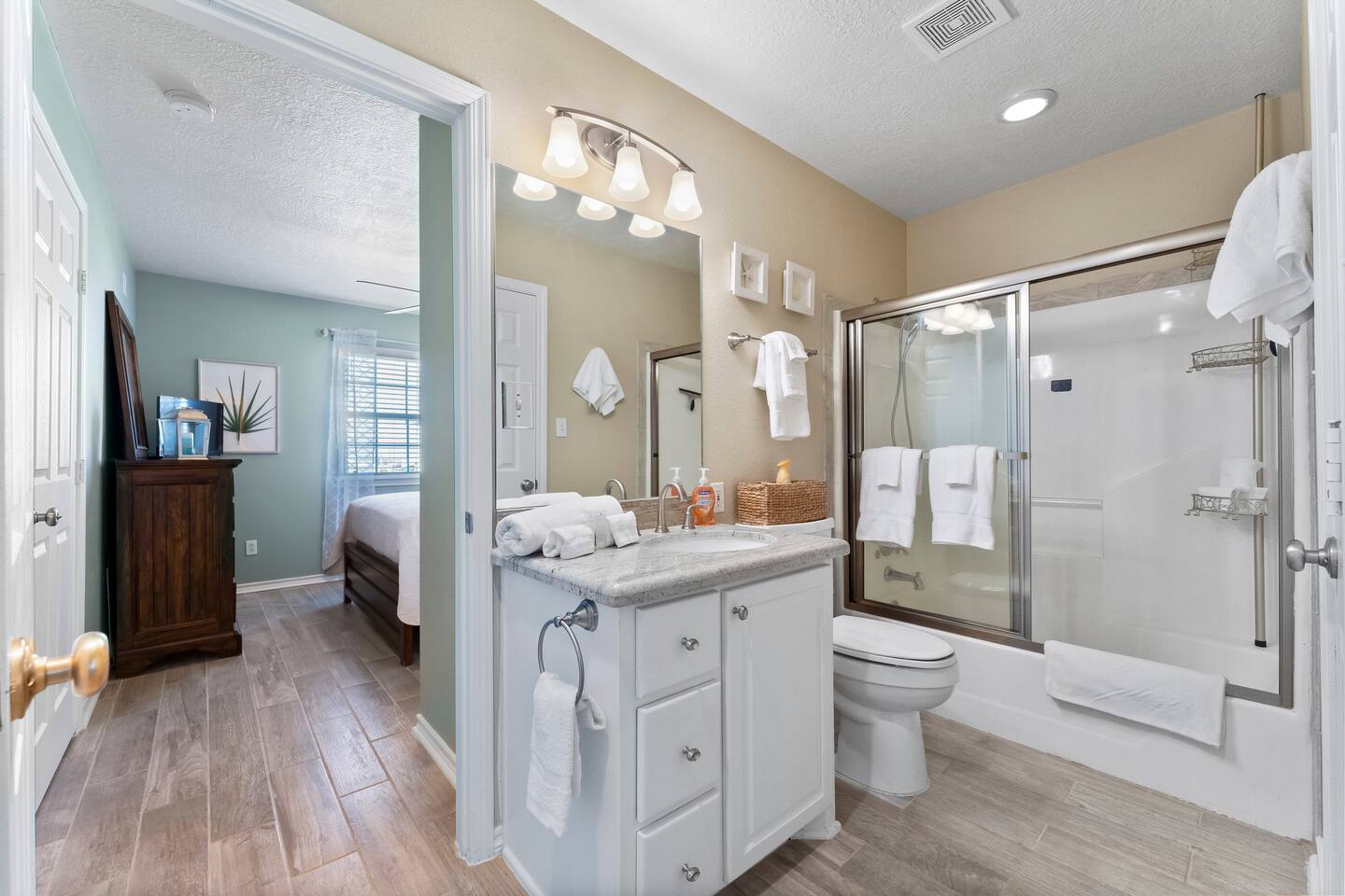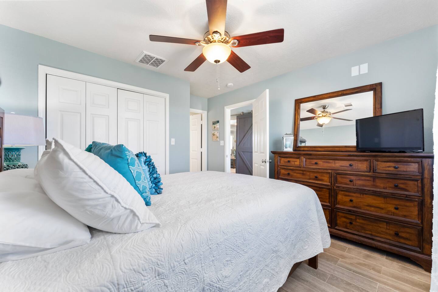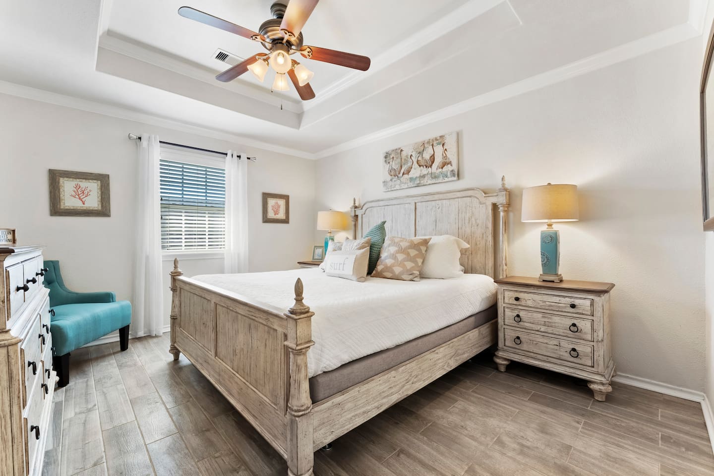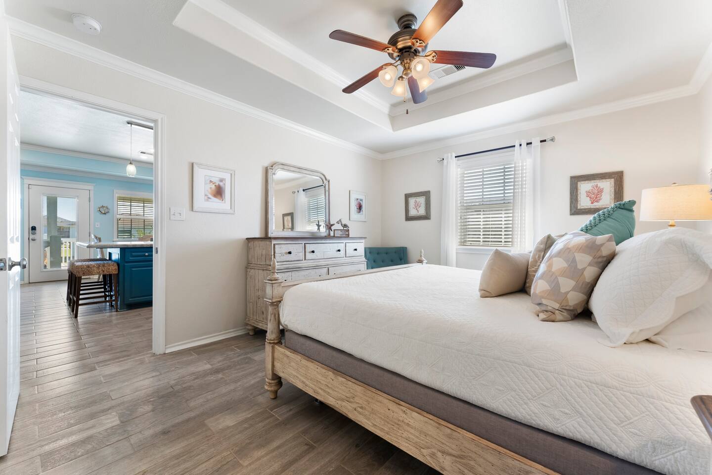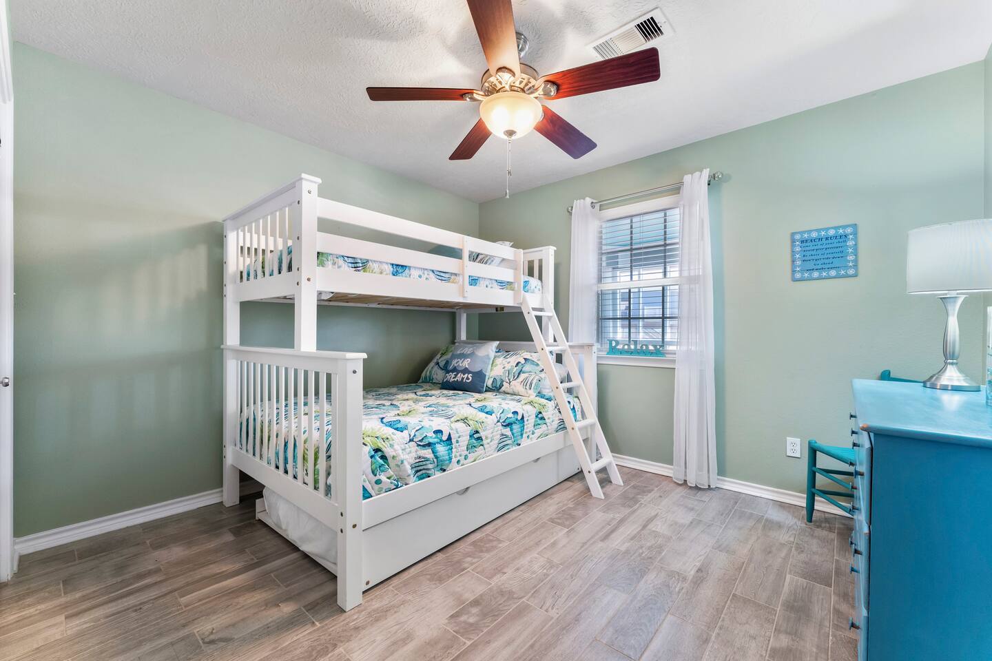 ❈ shaded, screened-in and sunny deck spaces with tons of outdoor seating ❈ 6 person private hot tub with 51 jets, multi-color light package, & waterfalls ❈ fully-loaded luxury kitchen ❈ outdoor bar and sink ❈ private outdoor shower ❈ fire pit with Adirondack chairs ❈ smart TV’s everywhere ❈ WIFI internet ❈ indoor & outdoor sound systems ❈ NFL Blitz Arcade Game ❈ cornhole & other outdoor games ❈ board games, books, & puzzles ❈ beach chairs, beach wagon, & rotating supply of beach toys ❈ charcoal grill, charcoal starter, & grilling accessories ❈ deep freezer loaded with bags of ice & secondary fridge ❈ ceiling fans & portable fans ❈ fresh bed & bath linens & beach towels for 12 people ❈ basic starter consumables to include: coffee, trash bags, a roll of paper towels, household cleaner, a fresh dish sponge, dish soap, dishwasher soap, hand soap, shampoo, conditioner, body wash, & a roll of toilet paper or two in each bathroom ❈ high chair, pack-n-play, kids dinnerware & utensils ❈ dog run that includes the upper deck & a fenced portion of the back yard ❈ washer & dryer ❈ parking for 4-6 vehicles Welcome to Texas! Crystal Beach is Texas at its finest. Drive, park, barbeque, swim, fish, build sandcastles, have events, or just relax on this beautiful and convenient beach. The beach house has everything you could need to enjoy your vacation. The home is lifted over 9-1/2 feet off of the ground, and the entire space is a finished patio with swinging benches, rocking chairs, bar chairs, tables, and a bar with a sink. Outdoor speakers with a Bluetooth sound system, hanging string lights, tons of games and a G-6 Tranquility Series 6 Person Spa make this space a paradise. The upper decks are spacious and include sunny, shady, and even screened-in deck areas. Seating and lighting is plentiful, and you can even hear the ocean waves at the front of the neighborhood. Walk inside to your open-concept luxury kitchen, dining, and living spaces. The kitchen is fully-equipped with everything you could possibly need to host your family or friends. The kitchen and island area seat 12 people comfortably. Small appliances not shown in pictures include a toaster and a crock pot. The living room has comfortable seating for 8-10 people and a large Roku TV with a sound bar and a subwoofer. You’ll find board games and puzzles in the entertainment center. How about a game day, game night, or a movie night? The master suite has a king bed, a 32” Roku TV, a ceiling fan, and solid wood furniture with built-in accent lighting. This bedroom features an en-suite bathroom with granite countertops, a river stone-floored walk-in shower and a large walk-in closet. You’ll find extra towels and blankets, as well as a box fan, and first aid kit in the closet. Bedroom 2 has a queen bed, a 32” smart TV, a ceiling fan, and solid wood furniture. The closet has extra blankets, a box fan, and a roll-away bed. A Jack-and-Jill bathroom connects bedroom 2 and bedroom 3. The bathroom features granite countertops and a large shower / bath combo with glass doors. Bedroom 3 has a bunk bed (twin over full) with a twin trundle, a 32” Roku TV, a ceiling fan, and solid wood furniture. In the closet you will find extra blankets and a toy chest with some goodies for the younger kids. Bedroom 4 has 2 bunk beds (twin over fulls), with a 32” smart TV featuring Chromecast and Apple AirPlay. This bedroom has an en-suite half bath and a dedicated mini-split HVAC unit. Bedroom 4 is on ground level separate from the rest of the home, and has its own private exterior entrance. The laundry room in the master bathroom has a full sized washer and dryer, and an iron and ironing board. The garage has a stand-up deep freezer and an additional refrigerator. We have an honor system set up for the deep freezer where we keep 100 pounds of ice ready for guests at all times. This allows you to have ice for your entire stay without having to run to The Big Store (less than 1 mile away). Please do not use the ice if you’re unable to refill it before your departure. The garage also features beach chairs, a beach wagon, and a rotating supply of beach toys that you are welcomed to bring to the beach, and a number of games and entertainment options for use at the property. There is a private outdoor shower with hot and cold water to rinse off after coming back from the beach, before getting in the spa, or just for enjoying a solid outdoor shower. We have a dog run! Your dog (30 pounds or less) can roam the entire upstairs patio space and take the stairs down to a fenced-in grass yard. We work hard to maintain a place that you and yours can enjoy. Come stay with us and indulge in the beach life!!