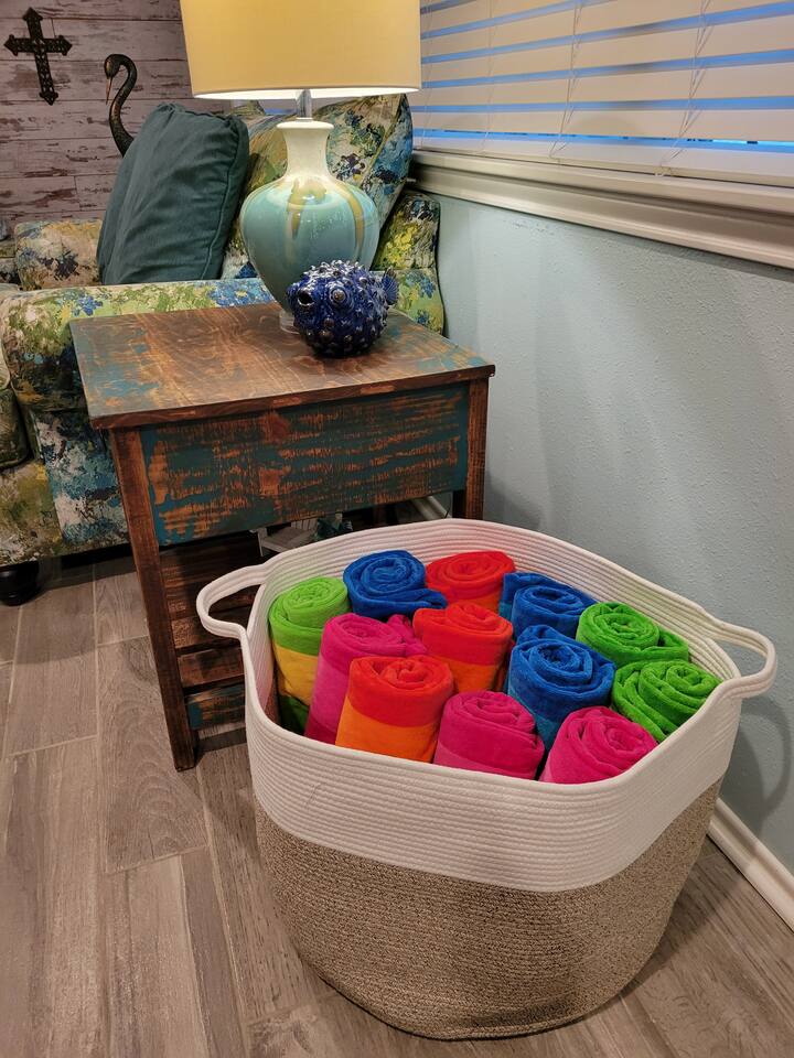 - Beach essentials Beach towels, umbrella, beach blanket, snorkeling gear