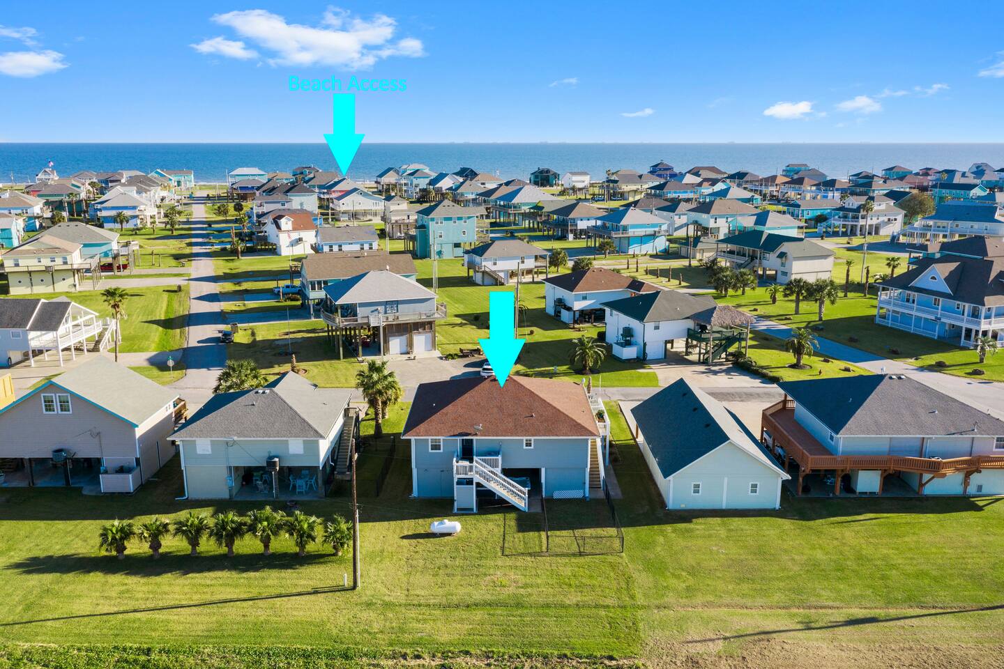 The neighborhood is centrally located in the heart of Crystal Beach and has direct walking, golf cart or vehicle access. The large grocery store (The Big Store) is 0.9 miles away, and the largest strip center with Tia Juanita’s Fish Camp & Ocean Grill is 1.3 miles away.