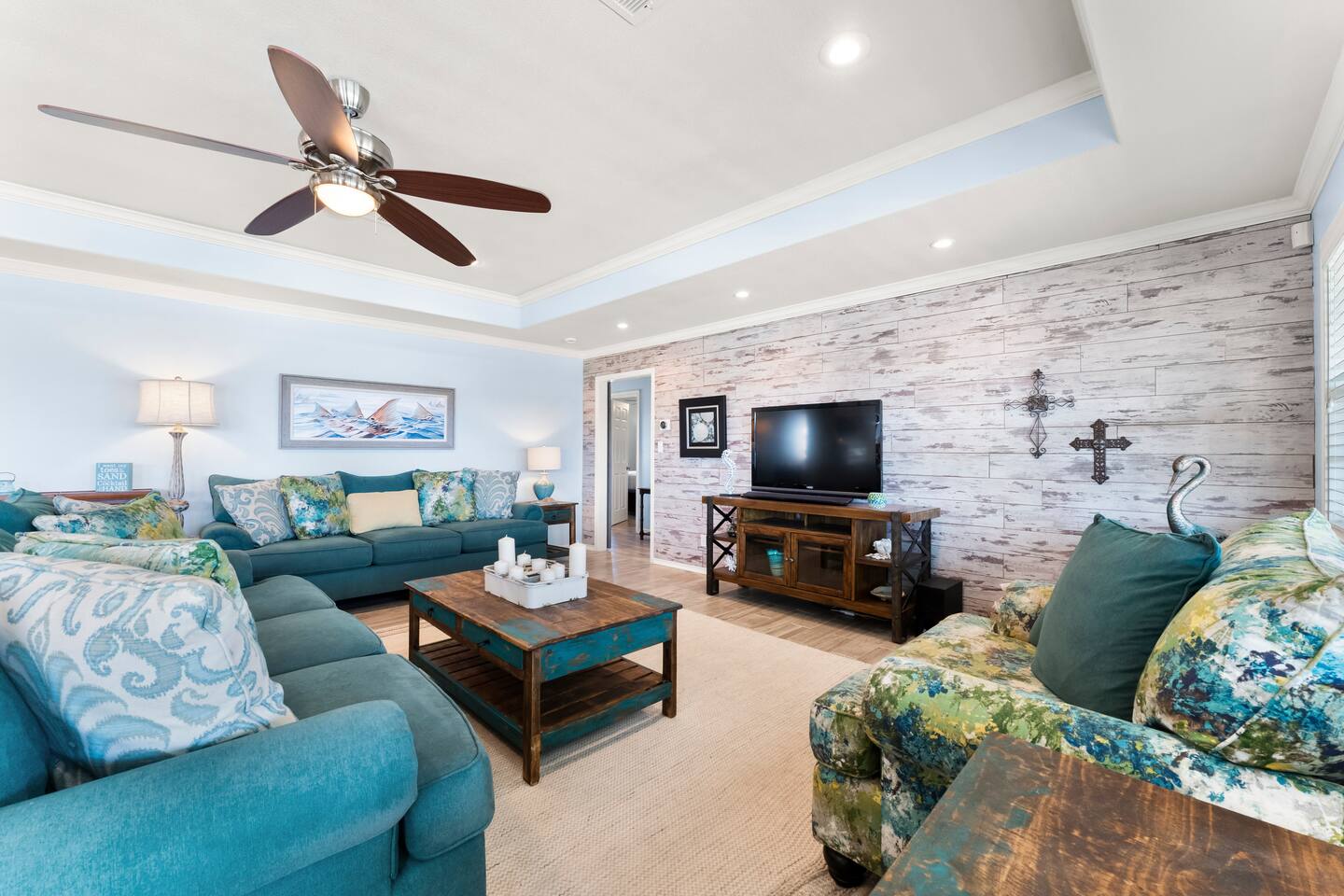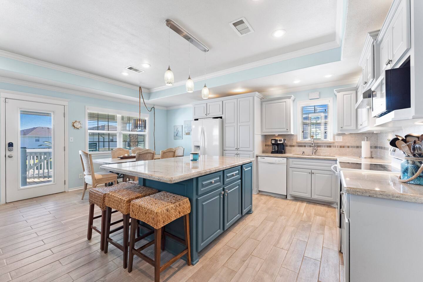 A private top-notch beach house with plenty of space for your family or group vacation. Direct access to Crystal Beach is what makes this location perfect. The house is loaded with entertainment, supplies, and amenities for you to enjoy. Read about the house below!