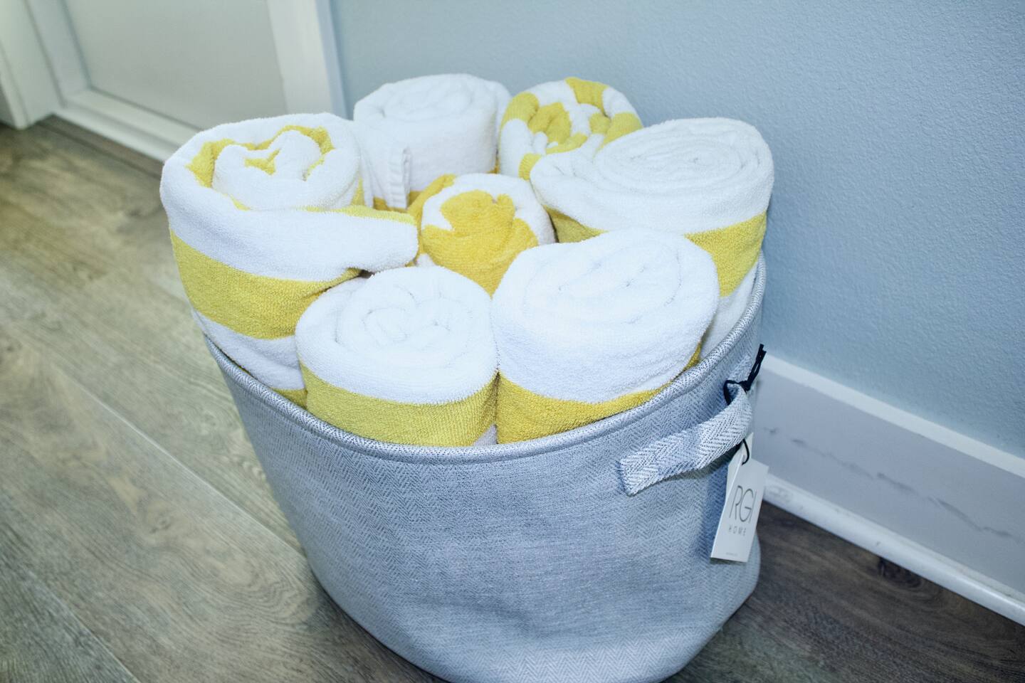 - Beach essentials Beach towels, umbrella, beach blanket, snorkeling gear
