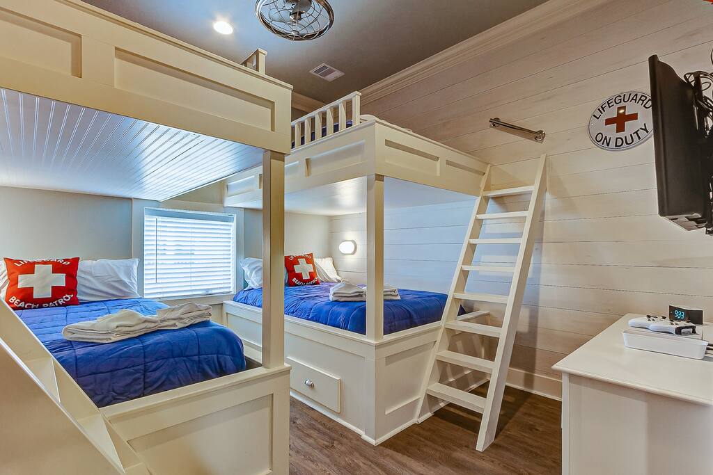 ❈ centrally located beach view property 5 houses from the sand ❈ sleeps 14 people comfortably in beds ❈ tons of outdoor space with 13 foot ceilings on ground level and a large covered deck ❈ private wrap-around balcony around the entire home ❈ 4-5 person private hot tub ❈ custom outdoor tiki bar ❈ bluetooth outdoor speakers ❈ ample outdoor seating with a large built-in dining table and patio chairs ❈ fully-loaded kitchen with high-end finishes and beautiful granite countertops ❈ outdoor shower with hot & cold water ❈ WIFI internet and smart TV’s everywhere ❈ thoughtfully and tastefully decorated throughout ❈ foosball table ❈ mini pool table ❈ outdoor cornhole boxes ❈ beach chairs, beach wagon, & rotating supply of beach toys ❈ ladderball, large Jenga, and frisbees ❈ board games, books & puzzles ❈ high chair, pack-n-play, kids dinnerware & utensils ❈ ceiling fans in every room ❈ fresh bed & bath linens for 14 people, and 6+ beach towels per reservation ❈ basic starter consumables to include: coffee, trash bags, a roll of paper towels, household cleaner, a fresh dish sponge, dish soap, dishwasher soap, hand soap, shampoo, conditioner, body wash, & a roll of toilet paper or two in each bathroom ❈ full-sized washer & dryer ❈ parking for 3-6 vehicles Miramar is where good vibes are made. In this cozy, recently renovated, custom built house with stunning beach views, you will switch your vacation mode ON to leave memorable footprints of your best adventure yet. As you make your way to the centrally located neighborhood, you will fall in love with the house having direct access to the beach. Sit back and enjoy the spectacular ocean views and gulf breeze from the porch, then stroll a short walk to the sandy beach. After an afternoon in the waves, rinse off in the outdoor shower, and then soak in the hot tub. Let the warm water fill the space around you, slow your breathing and take it all in. A self-care overindulgence which will melt your stress away. Make your way up to the entry where you will be greeted by open concept living room and kitchen with vaulted ceilings for all your guests to gather and enjoy. The nautical living room brings the feel of fishing boats navigating the subtle tones of the ocean. It offers comfortable seating for all sailors to watch their favorite shows or play with all kinds of board games for a family fun night. The kitchen has everything you need to prepare and serve meals for your stay including all new appliances large and small. The dining area has a beautiful custom-built table that seats 10 with additional seating for 4 more at the countertop kitchen. Three majestically adventure-inspired bedrooms provide comfortable accommodations for up to 14 guests. All the bedrooms have pillow top mattresses for a good night’s rest, flat screen smart TV’s, iphone clock / charging stations, and luggage racks in each closet. SURF MASTER This spacious master with an en-suite bathroom, garden tub and standalone tiled shower will transport you to a beautiful sunny day where you will catch the first wave of your stay. This surf style decorated room features a king size bed with a surfboard headboard as a focal point. Your stress will be swept away. You’ll recharge your batteries, and the waves will leave you craving for more. SCUBA TWIN After your initial dive into this undersea world, you’ll settle down on two queen size beds which look to be the perfect exploration craft for your next adventure. Almost immediately, your gaze comes into view of a school of fishes swimming around a hinged porthole. Can’t help but surrender to the sanctuary beneath the surface. SQUAD WATCH This outpost quarters 4 full size custom-built bunk beds to comfortably accommodate 8 guests, adults or children. This lifeguard inspired room may be everyone’s favorite.. Once the blow down is called, the squad returns to reload and be rescue-ready for the next adventure. A large entertainment area downstairs is the perfect place for outside gatherings, including a shower, picnic table, tiki bar, cornhole boards, gas and charcoal grills, patio poly Adirondack chairs and private parking for 3-6 cars. We provide lots of necessities including coffee, trash bags, a roll of paper towels, household cleaner, a fresh dish sponge, dish soap, dishwasher soap, hand soap, shampoo, conditioner, body wash, & a roll of toilet paper or two in each bathroom. Best of all, you’re at the beach! Plan your stay with your friends, family or come solo and let us help you create the perfect getaway. We work hard to maintain a place that you and yours can enjoy. Miramar has everything you need to enjoy a great vacation!!