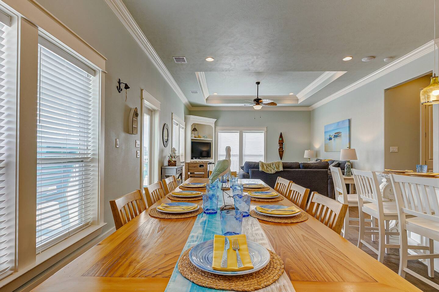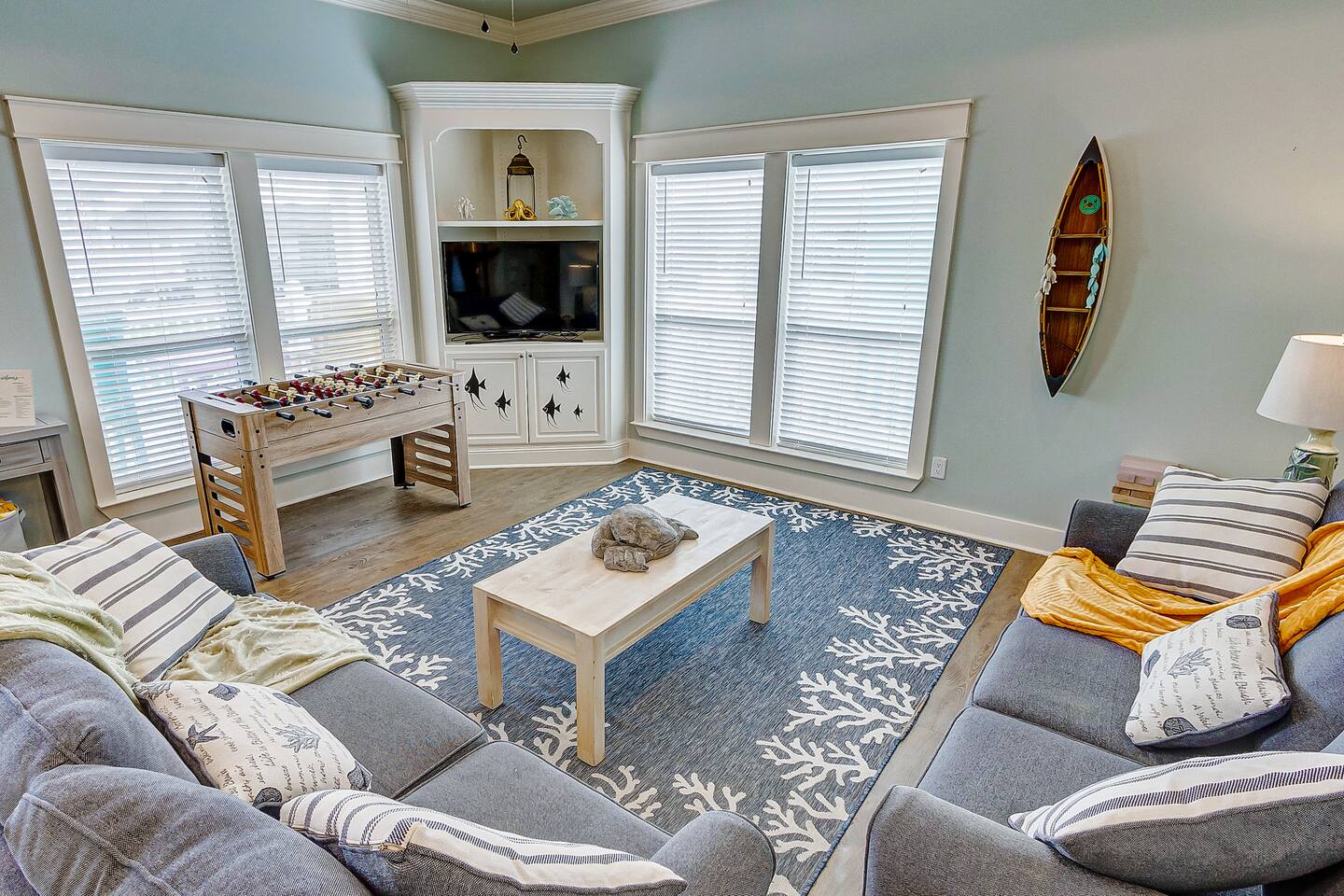 A private, top-notch beach house with a view & plenty of space for your family or group vacation. Beach View and Direct Beach Access 5 Houses Down - Sleeps 14 People - Hot Tub - Custom Tiki Bar - Plenty of Outdoor Seating - Large Kitchen with Quality Finishes - Fun Themed Bedrooms - BBQ Grill - Foosball Table - Mini Pool Table - WiFi - Smart TV’s Everywhere - Baby / Kid Items - Linens & Consumables Provided