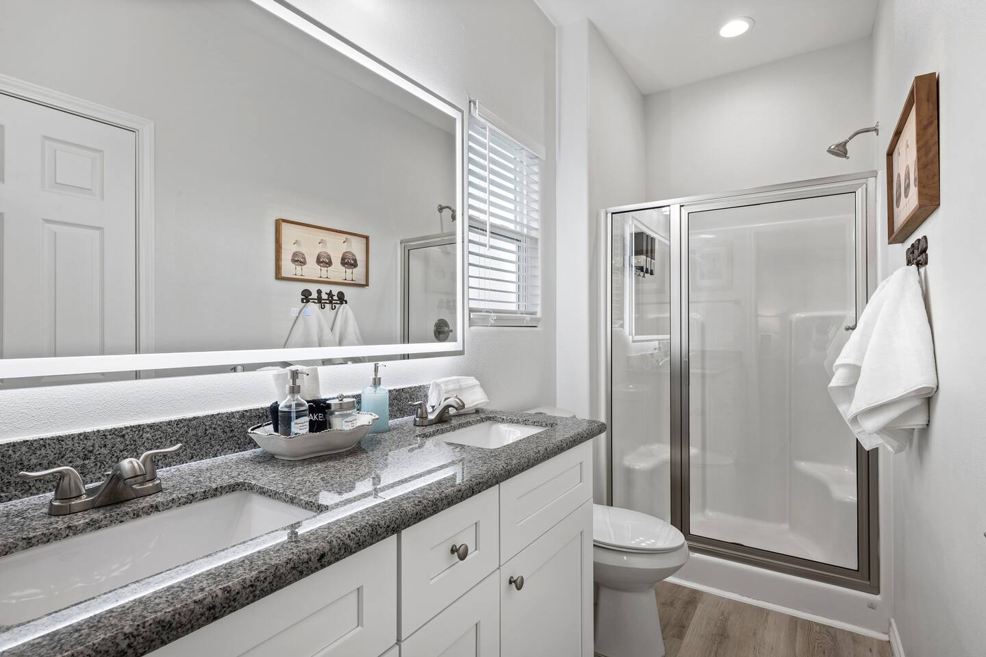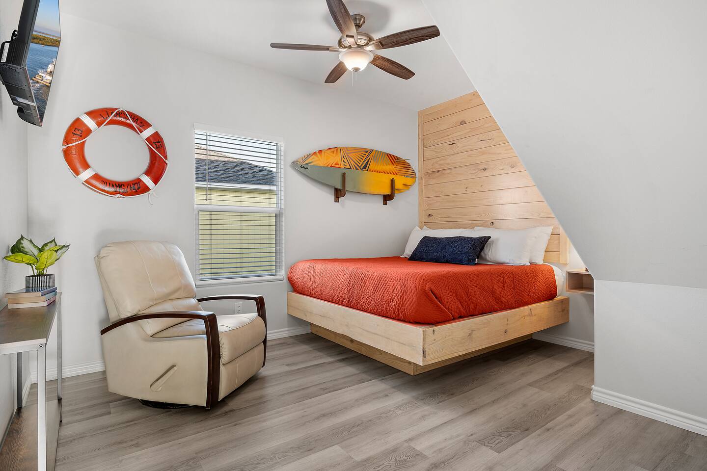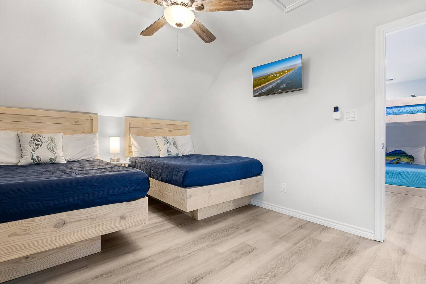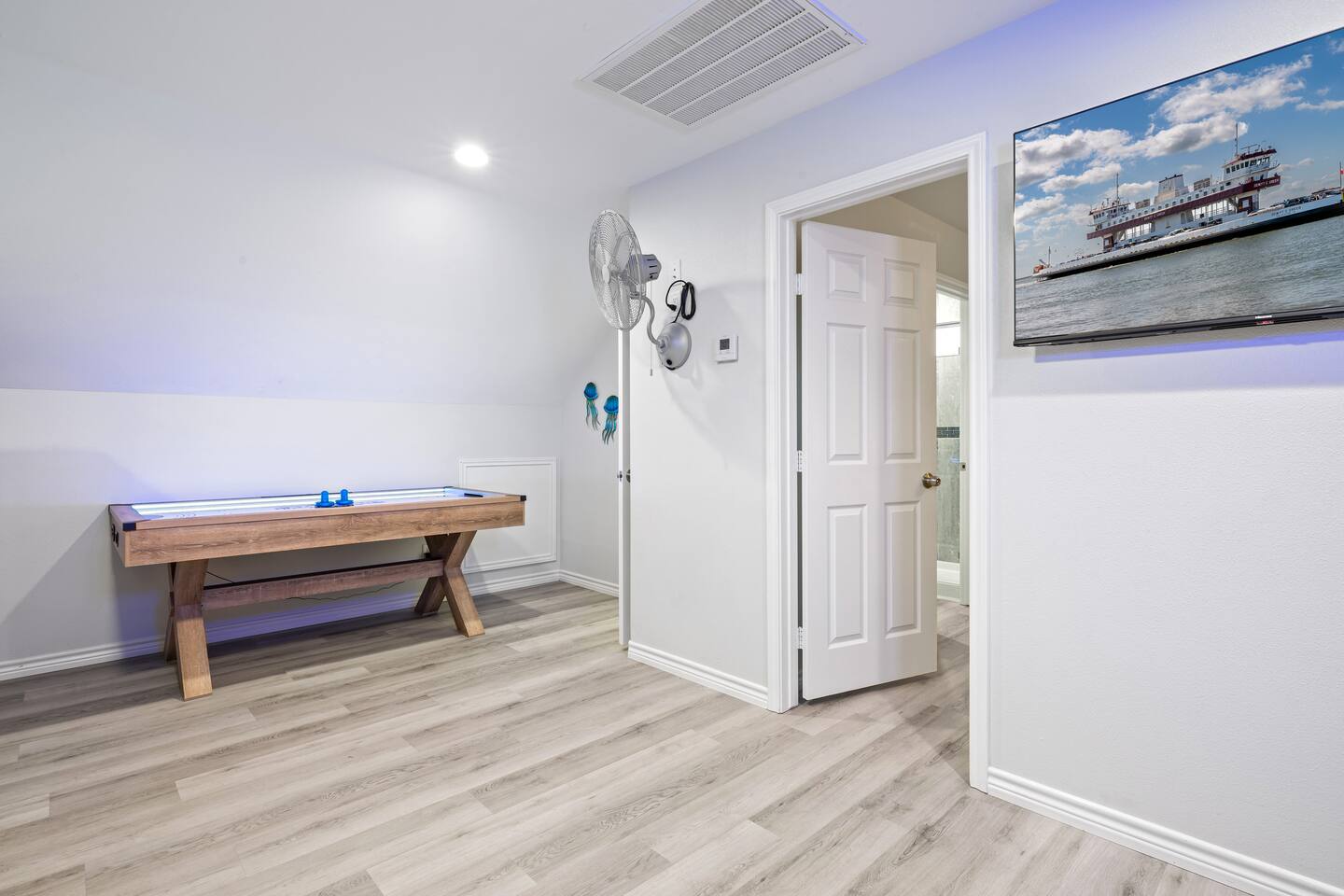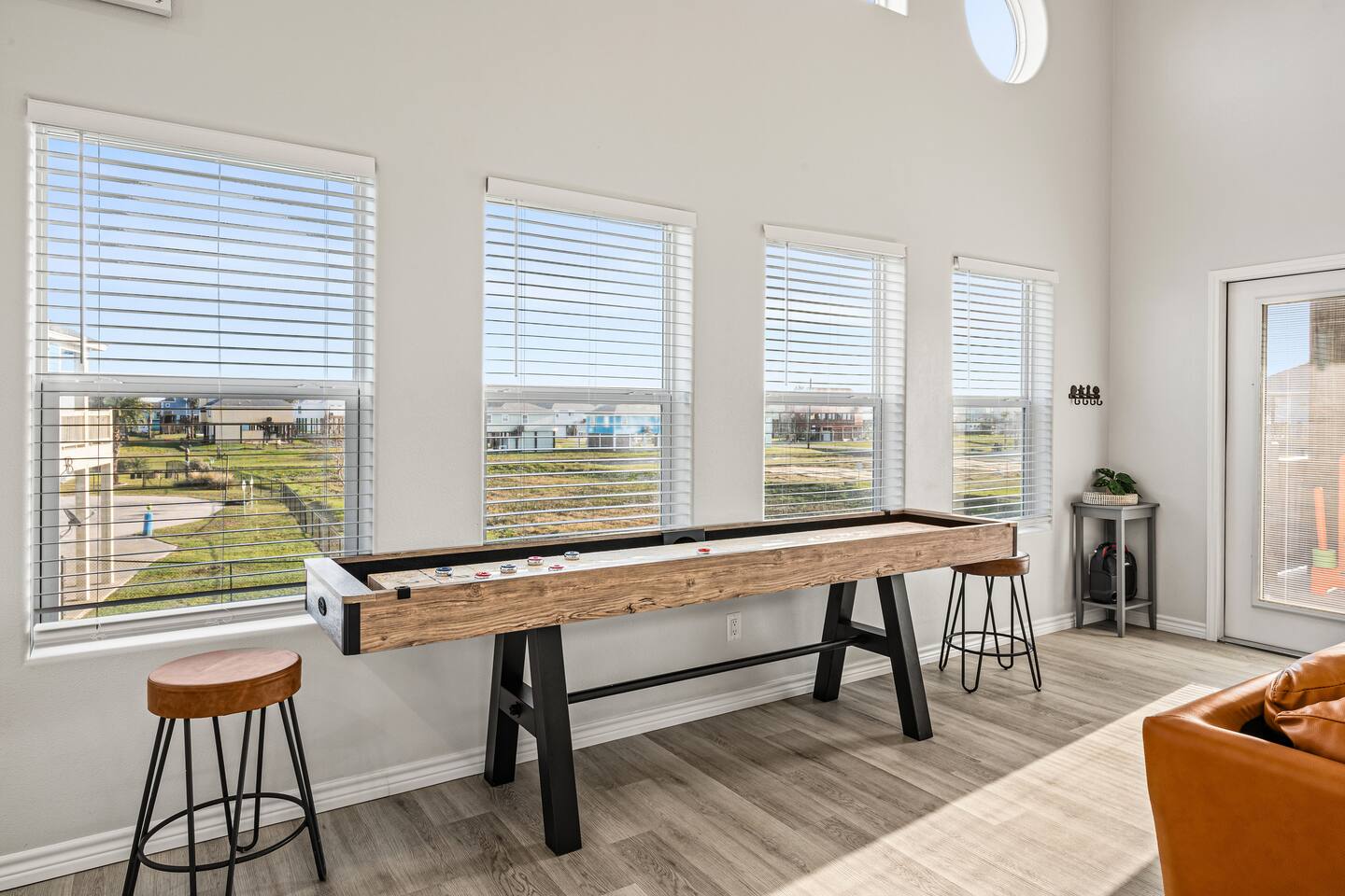 ❈ 2 story beach house that sleeps 20 people comfortably in custom-built beds ❈ tons of outdoor space with 13 foot ceilings on ground level and 2 upper decks ❈ large fenced in corner lot surrounded by over 4 acres of undeveloped land ❈ private wrap-around balcony to 3 of the 4 King bedrooms ❈ 5 person private luxury hot tub with 37 jets, water fountains, and LED package ❈ large outdoor bar and ample outdoor seating with 4 tables and 28 patio chairs ❈ fully-loaded kitchen with 2 full-sized refrigerators ❈ 3 central HVAC systems for maximum guest comfortability ❈ outdoor shower with hot & cold water ❈ built-in playground with slide and swings ❈ WIFI internet and smart TV’s everywhere ❈ portable outdoor speaker for use on property and indoor sound system ❈ decorated with art from local painters and photographers ❈ custom mural for photo opportunities ❈ fire pit ❈ large Char-Grill smoker / grill with grilling accessories ❈ 9-foot shuffleboard table ❈ custom-built cornhole boxes ❈ 6-foot air hockey table ❈ NFL Blitz football arcade game ❈ ladderball, outdoor Jenga, outdoor Connect 4, hook & ring game, basketballs, & frisbees ❈ board games, books & puzzles throughout the house ❈ beach chairs, beach wagon, & rotating supply of beach toys ❈ high chair, pack-n-play, kids dinnerware & utensils ❈ ceiling fans in every room and several pedestal fans available for use ❈ fresh bed & bath linens for 20 people, and 10 beach towels per reservation ❈ basic starter consumables to include: coffee, trash bags, a roll of paper towels, household cleaner, a fresh dish sponge, dish soap, dishwasher soap, hand soap, shampoo, conditioner, body wash, & a roll of toilet paper or two in each bathroom ❈ full-sized washer & dryer ❈ parking for 3-6 vehicles Welcome to Texas! Crystal Beach is Texas at its finest. Drive, park, barbeque, swim, fish, build sandcastles, have events, or just relax on this beautiful and convenient beach. The beach house has everything you could need to enjoy your vacation. The home is lifted 13 feet off of the ground, and the entire lower level is a finished patio with a bar, swinging chairs, dining tables, string lights, and tons of games for entertainment. An outdoor TV, radio and a brand new Catalina 5-person luxury hot tub make this space a paradise. There is a private outdoor shower with hot and cold water to rinse off after coming back from the beach, before getting in the spa, or just for enjoying a solid outdoor shower. The backyard is fenced in with a fire pit, a BBQ grill/smoker, and a playground for the kids. The DOG RUN allows you to let your pup (30 pounds or less) roam the upstairs patio space and take the stairs down to the fenced-in grass yard. The upper deck includes loungers, seating for dining and string lights for perfect evening ambiance. The 4 acres of undeveloped land surrounding the house create a nice sense of privacy and openness. With only 3 houses (as a seagull flies) between Stairway to Heaven and the beach, you can reliably hear the ocean right from the patio. Walk inside to your open-concept kitchen, dining, and living spaces. The kitchen is fully-equipped with everything you could possibly need to host your family or friends, including what we have deemed the “double fridge power move”. The kitchen and island area seats 12 people. Small appliances also include Keurig with latte capabilities, a blender, a toaster, a drip coffee maker, a mixer, and a crock pot. The large living room has 28 foot tall ceilings, 12 windows, a 9-foot shuffleboard table, comfortable seating for 8-10 people and a 65” smart TV with a sound bar and a subwoofer. It is decorated with genuine autographed art from local artists and photographers. You’ll find board games and puzzles in the hallway nook to help enjoy your time. The door to the left of the fridge allows you to create some separation from the stairway leading to the upper rooms. The first King bedroom has a door to the wraparound balcony, a 40-inch smart TV, a ceiling fan, and custom-built furniture. This bedroom features a full jack-and-jill bathroom with granite countertops, a large backlit mirror, double sinks, and a glass shower. You’ll find a pedestal fan, hangers, a high chair and a pack-n-play in the closet. King bedroom #2 has a door to the wraparound balcony, a 32-inch smart TV, a ceiling fan, and custom-built furniture. It also connects to the full jack-and-jill bathroom and is equipped with a pedestal fan. King bedroom #3 has a door to the wraparound balcony, a 40-inch smart TV, a ceiling fan, and custom-built furniture. You will find a pedestal fan and hangers in the closet. King bedroom #4 has a large window, a recliner, a 40-inch smart TV, a ceiling fan, and custom-built furniture. The “surf room” has super fun vibes with a real surfboard mounted on the wall over the bed. A full hallway bathroom with backlit mirror and built-in shelves will serve king bedrooms 3&4. Bedroom #5 is upstairs and has 2 full-sized beds, a large window, a 32-inch smart TV, a ceiling fan, and custom-built furniture. This bedroom features a full jack-and-jill bathroom with granite countertops, a backlit mirror and a glass shower. Bedroom #6 is a shared space with the upper game room. It has 4 queen beds, a 50-inch smart TV, an oscillating wall-mounted fan, books and games for kids, an air hockey table and an NFL Blitz football arcade game. This room has direct access to the upper jack-and-jill bathroom with a separate entrance from bedroom #5. The laundry room in the hallway has a full sized washer and dryer, and an iron and ironing board. We work hard to maintain a place that you and yours can enjoy. Come stay with us and indulge in the beach life!!