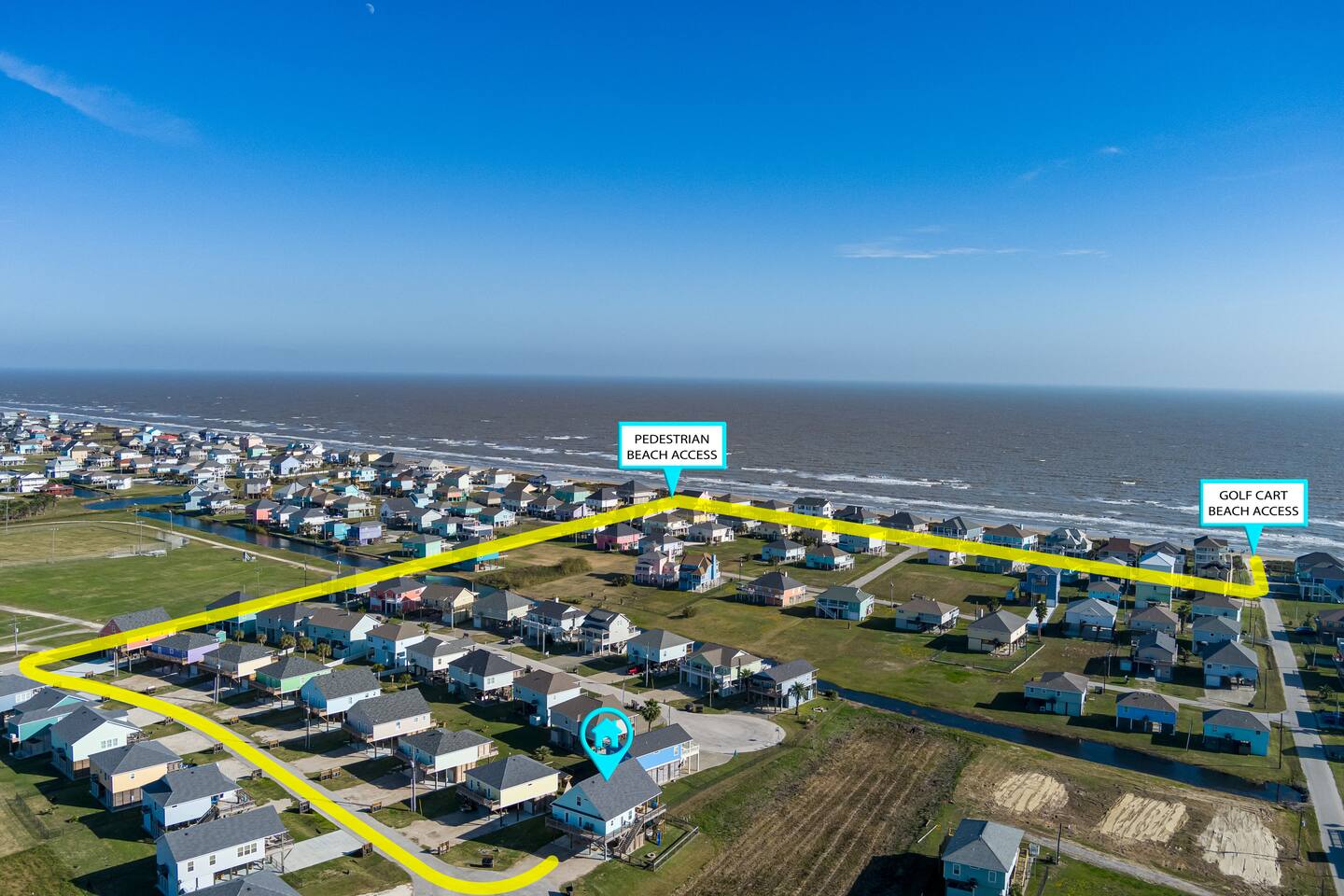The neighborhood is centrally located in the heart of Crystal Beach and has direct walking or golf cart access. Gregory Park is in the neighborhood and has a public basketball pavilion. The large grocery store (The Big Store) is 0.7 miles away, and the largest strip center with Tia Juanita’s Fish Camp & Ocean Grill is 0.4 miles away.